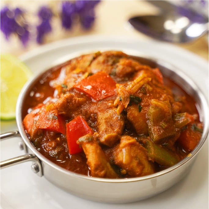Chicken Jalfrezi is a popular Indian and Pakistani dish known for its spicy, tangy, and slightly sweet flavors. It consists of marinated chicken stir-fried with bell peppers, onions, tomatoes, and a variety of spices, creating a vibrant, colorful dish with a thick, flavorful sauce. Originally developed during British colonial times, Jalfrezi has become a favorite in Indian restaurants worldwide.